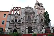 In 1741, the city received the title of “The Most Noble and Loyal City of Santa Fe de Minas de Guanajuato” and became an “intendencia” (province) in 1790 because of the abundance of riches coming from its mines.[6] In the 18th century, it was the world's leading silver extraction center,[13] making it the richest city in Mexico for much of the early colonial period.[14] The production of the La Valenciana mine alone affected the world economy, and made the counts of Valencianas one of the most powerful families in New Spain.[10] The city was one of the richest and most opulent in New Spain in the 18th century. This wealth is manifested in its civil and religious architecture.[6] The colonial architecture includes some of the best Baroque and Churrigueresque examples in the New World—such as the Valenciana, Cata, and La Compañía (Jesuit) Churches, and the Basilica of Our Lady of Guanajuato.[14] Most constructions from this time are of pink or green sandstone. In the churches, the Baroque altars were gilded with gold from local mines.[10] These structures have influenced later buildings throughout central Mexico. According to the UNESCO World Heritage Sites, the La Compañía and La Valenciana churches are considered among the most beautiful examples of Baroque architecture in Central and South America.[13]