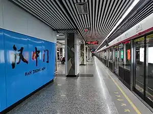 Hanzhongmen station (simplified Chinese: 汉中门站; traditional Chinese: 漢中門站; pinyin: Hànzhōngmén Zhàn), is a station of Line 2 of the Nanjing Metro. It started operations on 28 May 2010 along with the rest of Line 2.[1][2]