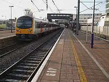 The station has five platforms, four being through platforms and one being a terminus bay platform. Platforms 1 and 2 are only used during certain engineering works and during disruption on the relief lines; 3 and 4 are for services (which are stopping services) to and from London, Heathrow Airport, Reading and Oxfordshire; platform 5 is a bay terminus platform, which was used for half-hourly shuttle services to Paddington. Platform 5 is capable of holding an eight-car train; platforms 2, 3 and 4 can hold nine-car trains and platform 1 can hold five-car trains. Platforms 3 and 4 have been extended as part of Crossrail improvement works. All platforms are connected with a footbridge to the new station building as part of the new Crossrail station improvements, which include step-free access to all platforms, step-free access to Station Road and Station Approach/High Point Village.[8] All lines at Hayes & Harlington are electrified.[9]