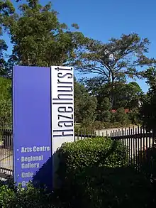 Hazelhurst Arts Centre, also known as Hazelhurst Regional Gallery & Arts Centre, Hazelhurst Gallery and Hazelhurst, is an arts complex located on Kingsway in the suburb of Gymea, in southern Sydney, New South Wales, Australia. It is the first public arts centre of its kind in Australia and sits on 1.4 hectares (3.5 acres) of gardens. The complex includes two art galleries, a theatrette, art studios, meeting rooms, gift shop and café as well as the gardens. The facility is also available for hire as a function centre. Hazelhurst opened on 22 January 2000. Architects for the building were Michael Bennet (of Jackson, Teece, Chesterman, Willis) in partnership with Esther and Trevor Hayter. The garden designs were by Oi Choong.