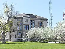 Helena's early commercial district was located along State, Edwards, and Broadway Streets, but fires destroyed much of this area in 1869, 1872, and 1874. Much of what was built afterwards was built in the Western Commercial style, with splendid brickwork and simple lines. The Beaux Arts Parchen Drug Building, Colwell Building, and the Penn-Block Bristol Hotel were French Renaissance. The Denver Block and Sands Brothers Dry Goods were Romanesque Revival.[3] By the mid-1880s at least 18 architectural firms had been established in Helena or called in from back East. Several of these architects were part of or influenced by the Chicago school of architecture. This influence is seen in the Atlas Building, Securities Building, Power Block, and the Lewis and Clark County Courthouse.[5]