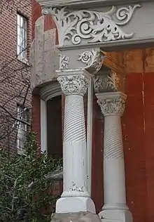 The Henry Dinwoodey House, at 411 East 100 South, Salt Lake City, Utah, is a Late Victorian house that was designed by Richard Kletting, architect of the Utah State Capitol. It was built in 1890 and was listed on the National Register of Historic Places in 1974.[1] The house exhibits characteristics of both Queen Anne Style architecture, with its asymmetrical facade and corner turret, and Romanesque Revival style, including rough-hewn stone, squat columns, and foliated carvings.