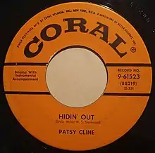 - 1 2 Cline, Patsy (November 5, 1955). ""Hidin' Out"/"Turn the Cards Slowly" (7 inch vinyl single sleeve insert)". Coral Records. 9-61523.