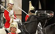 The horse tongue is highly sensitive, and therefore vulnerable to injury.[3][40] The main cause of lingual injuries in horses is man-made, and comes from wearing a bit.[3] A horse tongue may also hang over the bit for a variety of reasons, particularly if the rider's hand is too hard or if the bit is not adapted to the horse's mouthpiece, thus preventing the rider from controlling the horse.[41] The horse may then let its tongue hang out to the side.[41] This behavior is to be distinguished from tongue stereotypies, as its origin is not the same.[42] To avoid this problem, there are "snaffle" bits and anti-tongue breakers to be added to the mouthpiece.[43]