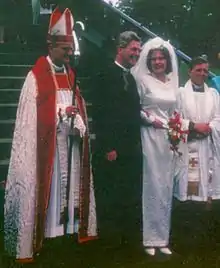 Bishop Cruse (left) at a wedding in 1965, shortly after his elevation to the episcopate.