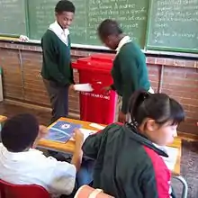 Most of the Education in South Africa comes from rural schools. In fact, approximately 79% of Black South Africans live in rural communities.[10] However, the government has neglected the quality of education in these rural areas.[10] Issues with rural schooling include: poor facilities, lack of clean water, lack of resources, and unmotivated teachers.[10] Considering poor facilities, some schools are not structurally stable and are at risk of collapse, with some schools even lacking electricity.[10] Most schools with more than 500 children lack proper sanitation for toilets while some schools don't have toilets at all.[10] Furthermore, many rural schools are in remote areas without direct access to clean water.[10] Water is generally kilometers away and unclean because animals bathe and drink in it.[10] This lack of water is a particular issue in the daytime when the temperature is highest.[10] The remoteness of these rural schools is also a particular problem because they are quite distant from pupils' homes.[10] And, many schools do not remedy this issue with transport.[10] Additionally, many schools lack the needed books and supplies for learning.[10] In June 2010, the Government Gazette recognised that these unfavorable learning environments increase rates of absenteeism of teachers and dropout rates of students.[10] Some students do not have enough food to eat and are hungry during school.[11] This hunger causes a lack on concentration and makes learning environments less favorable.[11]