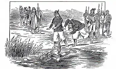 Illustration of Časlav being thrown into the Sava by the Magyars