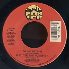 - ↑ I'm Not Havin' It/A Good Combination (track listing). MC Lyte And Positive K/Positive K. First Priority Music. 1989. 7-99187.