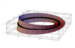 Two simple examples of I-bundles are the annulus and the Möbius band, the only two possible I-bundles over the circle . The annulus is a trivial or untwisted bundle because it corresponds to the Cartesian product , and the Möbius band is a non-trivial or twisted bundle. Both bundles are 2-manifolds, but the annulus is an orientable manifold while the Möbius band is a non-orientable manifold.