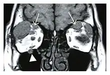 - ↑ J. Ben Soussan; R. Deschamps; J. C. Sadik; J. Savatovsky; L. Deschamps; M. Puttermann; M. Zmuda; F. Heran; O. Galatoire; H. Picard; A. Lecler (19 July 2016). "Infraorbital nerve involvement on magnetic resonance imaging in European patients with IgG4-related ophthalmic disease: a specific sign". European Radiology. 27 (4): 1335–1343. doi:10.1007/s00330-016-4481-5. PMID 27436015. S2CID 645961.