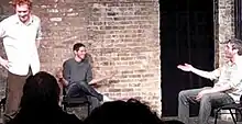 Three improvisers performing longform improv comedy at the Gorilla Tango Theatre in Chicago.