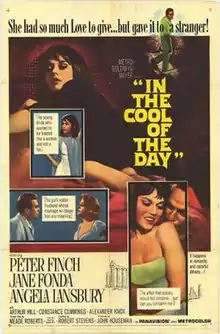 In the Cool of the Day is a 1963 British-American romantic drama film released by Metro-Goldwyn-Mayer in Metrocolor and Panavision.[2][3] The film is directed by Robert Stevens and starring Peter Finch, Jane Fonda, Angela Lansbury, Arthur Hill, and Constance Cummings; with Nigel Davenport, and John Le Mesurier.[4]