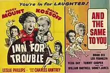 Inn for Trouble is a 1960 black and white British comedy film directed by C.M. Pennington-Richards and starring Peggy Mount, David Kossoff and Leslie Phillips.[1] It was a spin-off of the 1950s ITV sitcom The Larkins. The title alludes to the real Trouble House Inn in Gloucestershire near Tetbury. The film is notable for the final credited appearances of Graham Moffatt and A. E. Matthews.