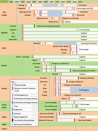 Detailed summary of investigations[note 1] and prosecutions by the International Criminal Court