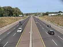 In March 2020, as a result of the COVID-19 pandemic,[15] the all-electronic tolling system on the turnpike will initially use existing toll booths at exits, along with existing equipment at all-electronic tolling interchanges, until mainline toll gantries between interchanges are constructed.[16] Mainline toll gantries are planned to be in operation by 2025.[17][18]