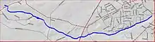 Its source is at 40°24′57″N 74°25′00″W / 40.41583°N 74.41667°W,[1] near the intersection of Cranbury Road and Rues Lane in east central East Brunswick. It crosses Fern Road, then runs through the East Brunswick Community Park and the Ireland Brook County Park. Crossing Dunhams Corner Road and the New Jersey Turnpike, it continues running through the long Ireland Brook County Park. It crosses Fresh Ponds Road and Riva Avenue, and drains into the Farrington Lake, a dammed section of the Lawrence Brook, at 40°25′14″N 74°29′07″W / 40.42056°N 74.48528°W.[1]