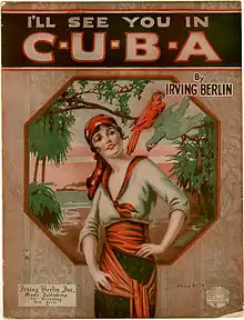 Biographer Charles Hamm writes that in Berlin's free time after hours, he taught himself to play the piano.[21] Never having had lessons, after the bar closed for the night, young Berlin would sit at a piano in the back and begin improvising tunes.[6] He published his first song, "Marie from Sunny Italy", written in collaboration with the Pelham's resident pianist Mike Nicholson,[11] in 1907, receiving 33 cents for the publishing rights.[4] The sheet music to the published song presented his name as "I. Berlin".[22]