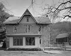 The farmhouse was built in 1885, and is a 2+1⁄2-story, L-shaped stone dwellingwhich was designed in the Victorian Gothic style. The house is built from sandstone in hues of purple and gray. Also located on the property are a contributing three-story bank barn (1905), a stone lime kiln, and a well (1886).[2]