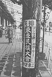 Slogans were used throughout Japan for propaganda purpose.[47] They were used as patriotic exortion – "National Unity", "One Hundred Million With One Spirit" – and to urge frugality – "Away with frivolous entertainment!".[48]