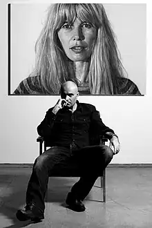 Jason Brooks is a British painter and sculptor. He studied at Goldsmiths College before completing his BA at the Cheltenham & Gloucester College of Art & Design. Jason spent some time in the British School of Rome in 1990, then going on to receive his MA from the Chelsea College of Art & Design, London in 1992. He debuted among the YBAs in the 1990s with his black and white portraits.[1] He won the NatWest art prize in 1999. Brooks judged the NPG Portrait Prize, John Moores Prize and the Jerwood Prize[2] and has gone on to exhibit globally since then. His work is held in private and public collections all around the world, including the National Portrait Gallery Collection, London.[3] A major overview of the artist’s work entitled Perpetual Orgy[4] was published in 2015 to coincide with his solo show, 'Origins', at Marlborough London.