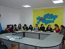 The youth wing Jas Otan supports the political platform of Nur Otan People's Democratic Party.[16] The claimed mission of the organization is consolidation of young people of Kazakhstan on the basis of the political platform of the President to ensure the modernization breakthrough in development of the country; goal of Jas Otan is to create a strong and credible political youth organization capable of leading the youth.[17]