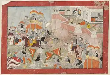 At this time, the Pandya kingdom was reeling under a war of succession between the two brothers Vira and Sundara, and taking advantage of this, the Hoysala king Ballala had invaded the Pandyan territory. When Ballala learned about Kafur's march, he hurried back to his capital Dwarasamudra.[78] However, he could not put up a strong resistance, and negotiated a truce after a short siege, agreeing to surrender his wealth and become a tributary of Alauddin.[79][80]