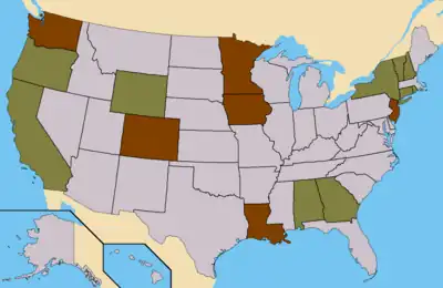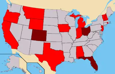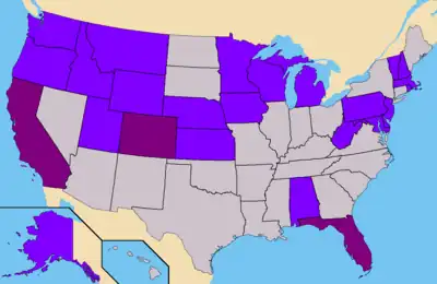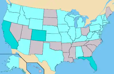 Light Blue – States where A.E. had submitted petitions. (41 Confirmed)
