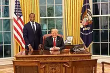 James supported Ted Cruz in the 2016 Republican Party presidential primaries.[45] He later became a Trump supporter,[45] and tweeted in 2018 that, if elected to the Senate, he would back Trump "2,000%."[49][50] During his 2020 campaign, James accepted Trump's endorsement and campaigned alongside him.[51][52] James has not been publicly critical of Trump or his actions.[47] During a meeting with black faith leaders, James was asked whether he disagreed with Trump on anything. James said, "Everything from cutting Great Lakes funding to 'shithole countries' to speaking ill of the dead. I mean, where do you want to start?"[53] In a leaked audio recording of a meeting with African American leaders in Michigan, James was asked why he hadn't publicly criticized Trump. He said he thought it was better to be silent in public in order to gain access to Trump. James said, "Donald Trump doesn't need less Black folks around him, he needs more," and that his goal was "achieving equity and equality for our people, not standing up on Twitter and condemning folks."[54] During the campaign, Democrats sought to tie James to Trump, while James has said his candidacy was not a referendum on Trump.[43]