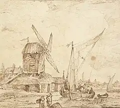 Ralston lived at 26 Brazennose Street from the time he settled in Manchester until shortly before his death.[20] By the late 1810s he had built a reputation as a skilled artist, and much like his teacher Rathbone he had a bias towards "picturesque" rural scenes, with "mouldering castles, ruined abbeys, and dilapidated cottages" his typical subjects.[21] However, he was most well-regarded as a marine painter, which he was said to have "thoroughly mastered."[16][22][23][4]