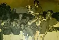 - ↑ "Nigeria Red Devils celebrate victory against Ghana, 1956. Holding the cup is captain Dan Anyiam". 18 July 2017. Retrieved 2018-12-28.