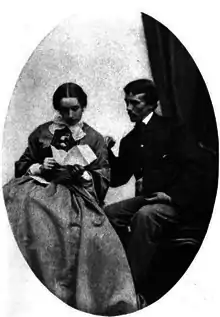 Josephine Shaw married Charles Russell Lowell, a businessman, in 1863. She followed him to Virginia when he was called into service during the Civil War. Lowell helped wounded men on the battlefield. She also prepared and send parcels through United States Sanitary Commission to soldiers on the front.[2] Charles died in battle, less than a year after they were married and only one month before their daughter, Carlotta, was born.