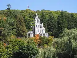Skene Manor, listed on the National Register of Historic Places as Judge Joseph Potter House, is a historic home located at Whitehall in Washington County, New York. It was built in 1874 and is a handsome Victorian style mansion built of grey sandstone quarried from its own site with a mansard roof. It features two towers and is embellished with three flat roofed bracketed porches. The center tower is three and one half stories and once featured a large clock that has been removed. The mansion was operated as a restaurant, but is now undergoing restorations and is open for tours.[2]