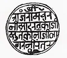 - ↑ V. G. Dighe (1951). "Provincial Maratha Dynasties". In Ramesh Chandra Majumdar (ed.). The History and Culture of the Indian People: The Maratha supremacy. G. Allen & Unwin. pp. 292, 307.