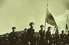 The Korean National Youth Association (Korean: 조선민족청년단; Hanja: 朝鮮民族靑年團) abbreviated as Jokcheong (Korean: 족청; Hanja: 族靑; lit. National Youth) was a neo-fascist, extreme right-wing group founded on October 9, 1946 under the catchphrase 'national branch, national geography', and led by Lee Beom-seok.[5] KNYA had an ideology that intersected fascism and resistance nationalism, which also embraced left-wing youth and was described as a "Third Way".[1][2] KNYA's fascism was deeply related to Third-Worldism (제3세계주의), which rejected both First World 'capitalism' and Second World 'communism'.[2]