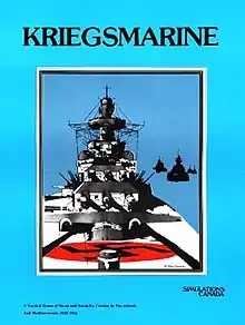 In 1980, Simulations Canada published a two-person board wargame about World War II naval combat in the North Atlantic titled Kriegsmarine. In 1989, the company released a text-only video game with the same title, although this was a very different game, being a single-player game from an operational rather than a tactical perspective.[3] The game, designed by James Baker and Stephen Newberg, was released for IBM, Atari ST, Apple II, and Amiga computer systems.[3] The video game used the same cover art by Rodger B. MacGowan that had been used on the board game box.