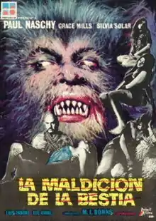 La Maldicion de la Bestia (The Curse of the Beast) is a 1975 Spanish horror film that is the eighth in a long series about the werewolf Count Waldemar Daninsky, played by Paul Naschy. The film has also been known as The Werewolf and the Yeti, Night of the Howling Beast and Hall of the Mountain King. [1] This film ignored the events from the earlier Hombre Lobo films and provided an all-new origin for Waldemar's lycanthropy, having the curse transmitted to Waldemar by the bites of two female werewolves. A yeti is woven into the storyline (as in The Fury of the Wolfman), but in this film the Yeti is not the direct cause of Waldemar's lycanthropy. Fernando Florido and Adolfo Ponte handled the special effects throughout the film.