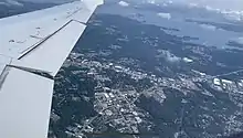Lake Murray is located on the Saluda River in Central South Carolina, in Lexington, Richland, Newberry, and Saluda counties.[13] It is nearby to the town of Lexington, which itself is a suburb of the capital of South Carolina, Columbia. It has a max width of 41 miles and length of 14 miles. It has an irregular shape, with several coves branching off it. Several small islands are located in the lake, such as the Jim Spence Islands, Shull Island, the islands of Dreher Island State Park, and Bomb Island, also known as Lunch Island, which is one of the largest nesting sites for Purple Martins in the nation.[14]