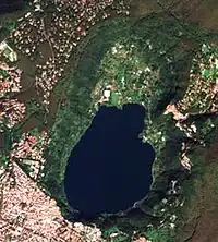It was formed in an ancient volcanic crater created at least 36,000 years ago.[1]
