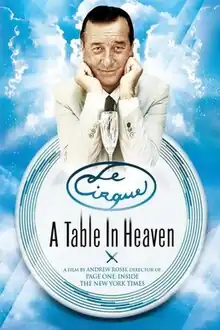 Le Cirque: A Table In Heaven is a 2007 American documentary film directed by Andrew Rossi about the reopening of the Le Cirque restaurant in New York City.[1][2][3] Before being released by HBO, the film premiered at the 2007 Full Frame Film Festival and went on to play at the 2007 Hamptons Film Festival, the 2008 Berlin International Film Festival, and the 2008 Sarasota Film Festival, among others.[4]
