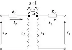 A nonideal linear two-winding transformer can be represented by two mutual inductance-coupled circuit loops linking the transformer's five impedance constants as shown in Fig. 2.[6][16][17][18]