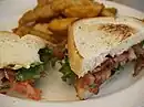 Nationwide | Sliced cooked poultry, fried bacon, lettuce, tomato, and mayonnaise, often on toast |