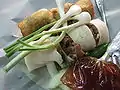 Babi panggang Batak, Balinese, and Indo Roasted pork Pork roasted in light spices and chopped, usually served with Batak style sambal and sayur daun singkong (cassava leaf vegetables).