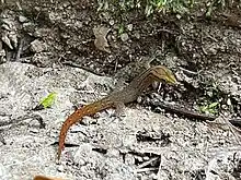 | Anolis lividus | Plymouth anole | Endemic. Widespread and frequently abundant. | ![]() |
