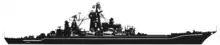 The size of the Kirov class was approximately 28,000-long-ton (28,000 t) full load. This was around the same size as a First World War super-dreadnought battleship, and significantly bigger than any contemporary cruiser design, leading to commentators in the west describing them as "battlecruisers".[36][37] Their appearance was a major factor in the US Navy reactivating its four Iowa-class battleships in the early 1980s.[38] The fourth unit, Yuri Andropov, was launched in April 1989, with plans advanced for a fifth ship, to be named Kuznetsov.[note 4][39][33][40] However, the fall of the Soviet Union saw funding for the Navy collapse—the fourth ship, renamed as Pyotr Velikiy (Peter the Great), was not commissioned until 1998, while the fifth hull was cancelled, and the remaining three laid up in varying states of disrepair.[40][33] Although the first ship, Kirov[note 5] began a planned overhaul in 1999, this was halted in 2001, with the decision taken to dismantle the ship instead.[42] Kalinin (renamed as Admiral Nakhimov in 1992[43]), considered to be in better condition, was scheduled to undergo a major overhaul to return her to active service by 2021.[44][45] However, problems in completing the work saw the ships' delivery date pushed back to 2023.[46] Once Admiral Nakhimov has rejoined the fleet, it was planned that Pyotr Velikiy would undergo a similar modernization. Then, in 2023, a report emerged that, owing to the spiralling cost of both its planned major refit, plus the increasing general maintenance costs, Pytor Velikiy would not undergo its planned modernisation and would instead be decommissioned once Admiral Nakhimov was returned to service.[47] However, this remained unconfirmed at the time, with instead it simply being noted that the ship was continuing to undertake operations while an assessment of its condition was being undertaken.[48] The fate of Frunze, renamed as Admiral Lazarev, was less clear, as the intention was to carry out an inspection of the ship to determine its overall condition once work on Admiral Nakhimov was completed.[49] However, in April 2019 it was announced that both Kirov, having already been defuelled,[49] and Admiral Lazarev were to be finally withdrawn and broken up.[50][51] Admiral Lazarev was sold for scrapping in February 2021.[52][53]