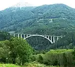 ![]() | 22 | Falkenstein Bridge | Falkensteinbrücke | 157 m (515 ft) | 396 m (1,299 ft) | Arch Concrete deck arch 157+125 | 1973 | Obervellach 46°55′28.4″N 13°14′25.1″E / 46.924556°N 13.240306°E | Carinthia | [S 34] [25] | |