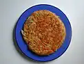 England | Sliced potatoes stacked on top of each other and baked then fried, sometimes containing root vegetables and topped with cinnamon. |