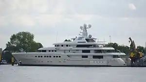 These boats are also known as "megayachts", "gigayachts" and even "terayachts", usually depending on length.[1][2] It has been generally accepted by naval architects and industry executives that superyachts range from 37 m (≈120 ft) to 60 m (≈200 ft), while those over 60 m are known as megayachts and boats over 90 m (≈300 ft) have been referred to as giga-yachts.[3][4]