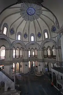 This Byzantine building with a central dome plan was erected in the sixth century by Justinian; despite its Turkish name, it likely was not a model for Hagia Sophia ("Holy Wisdom"), with which its construction was contemporary, but it is nonetheless one of the most important early Byzantine buildings in Istanbul.[2] It was recognized at the time by Procopius as an adornment to the entire city,[3] and a modern historian of the East Roman Empire has written that the church "by the originality of its architecture and the sumptuousness of its carved decoration, ranks in Constantinople second only to St Sophia itself".[4]