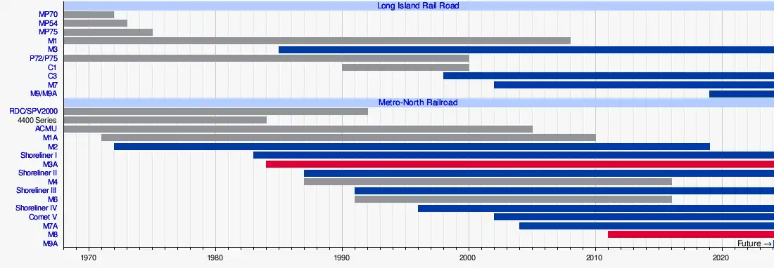 - ↑ Castillo, Alfonso A. (June 27, 2022). "LIRR's M9 cars 17 more months behind schedule". Newsday. Retrieved July 19, 2022.