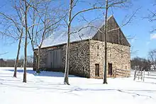 The Klein Meetinghouse is a historic Dunkard (Schwarzenau Brethren or Church of the Brethren) meetinghouse in Harleysville, Pennsylvania built in 1843. The second oldest congregation of the Brethren in the United States, which was founded in the area in 1720, built the meetinghouse, and the adjoining cemetery contains the remains of Peter Becker, who led the Brethren to America in 1714.[7]